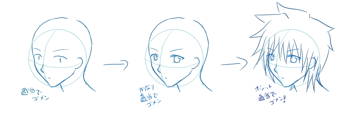 某所で「顔の描き方教えて~!」なんてヘルプコールがあったので、描いたものをそのまま流用有効活用させていただきましたw