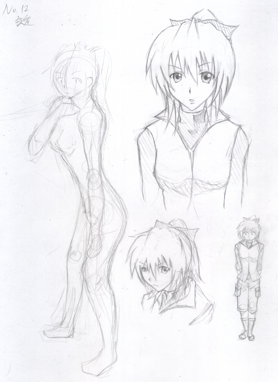 髪型は、ショートカット系ばっか(長くてもクラナドの渚位)しか描いたことの無かったから、今まで描いたことのないポニテにしてみた。いろんな画像参考にしながら。
