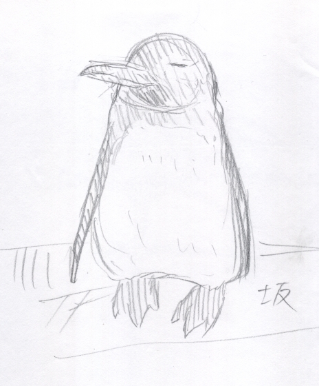 ←の絵も「眠そうなこの顔イイ!ホントにこんなほのぼの顔するんだなぁ!」って意気込んで描き始めたら開始十秒で「グァー(ペンギンの泣き声!)」⇒テケテケテケ(ペンギンは逃げだした!)